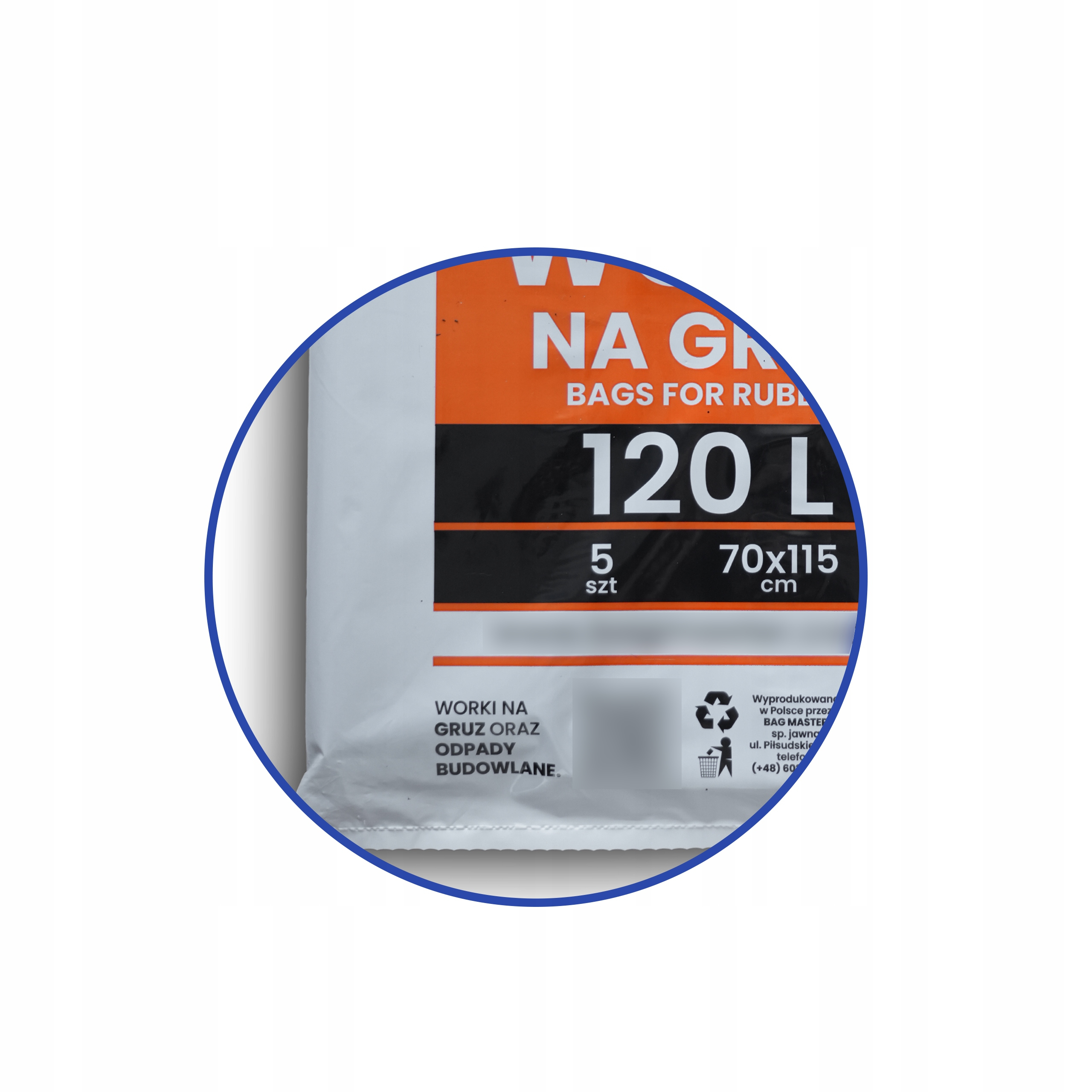 Worki są o pojemności 120 L, wymiarze 70x115 cm i grubości 80 mikronów. Dzięki kontroli jakości na każdym etapie wytwarzania zapewniamy solidne wykonanie oraz wysoką odporność na rozerwanie i uszkodzenia mechaniczne. Przeznaczone do prac remontowych, budowlanych i porządkowych.