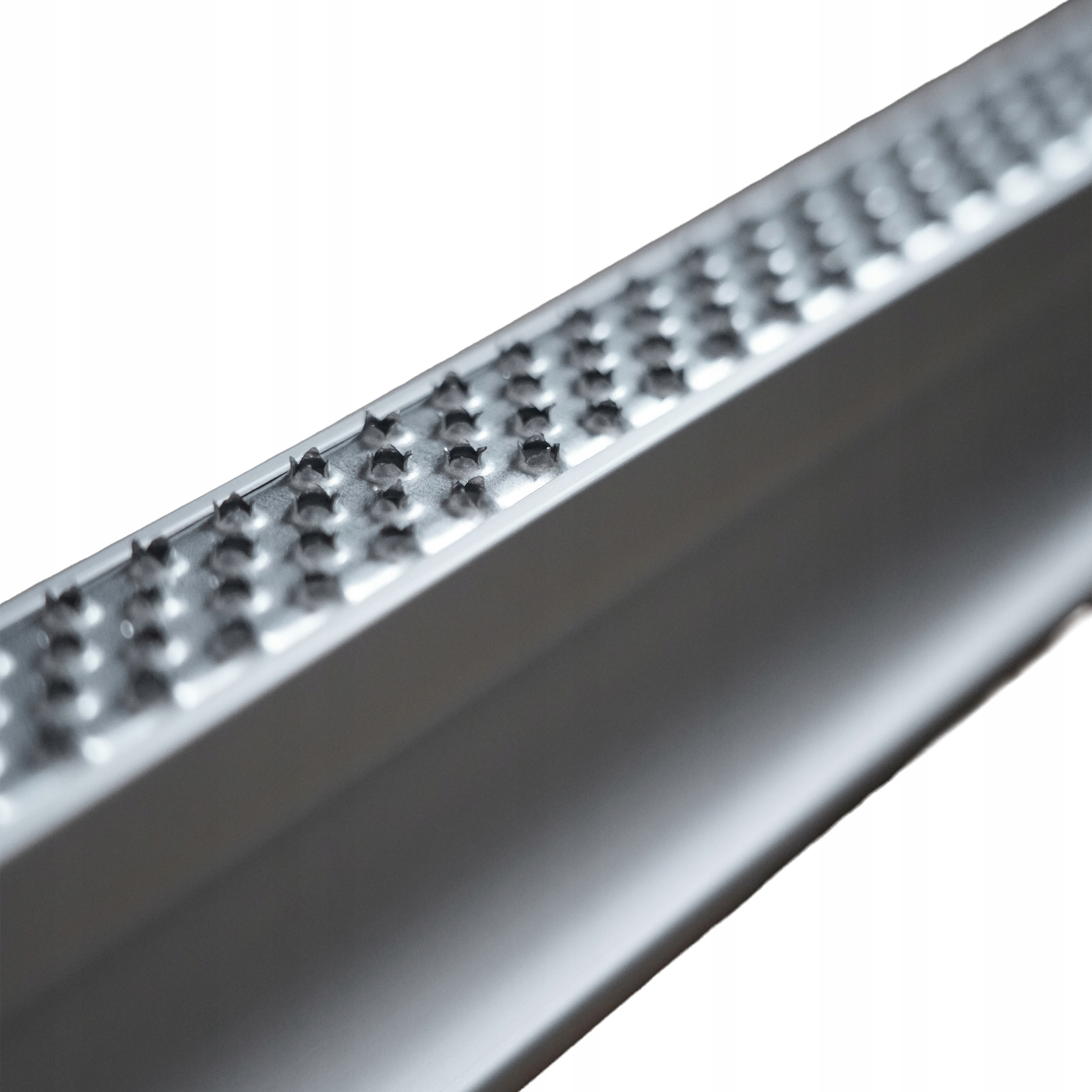 Narzędzie wykonane jest z sztywnego, aluminiowego profilu, który zapewnia stabilność i precyzję podczas pracy. Profil został anodowany, co zwiększa jego odporność na ścieranie oraz zabrudzenia. Tarnik posiada modułowe, wymienne ostrza metalowe, a niezaślepiona konstrukcja profilu umożliwia bieżące odprowadzanie ścieranych resztek styropianu, zapobiegając zapychaniu narzędzia.